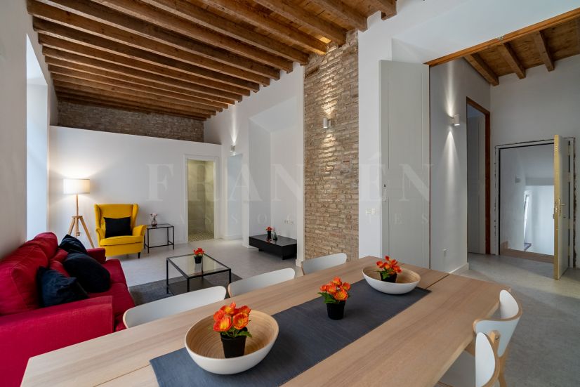 A rare opportunity to acquire a beautifully historic building in the upcoming Lagunillas area, right in the center of Málaga. This property consists of three individual units (horizontal division), each retaining original charm with high ceilings, exposed beams, and classic architectural details.