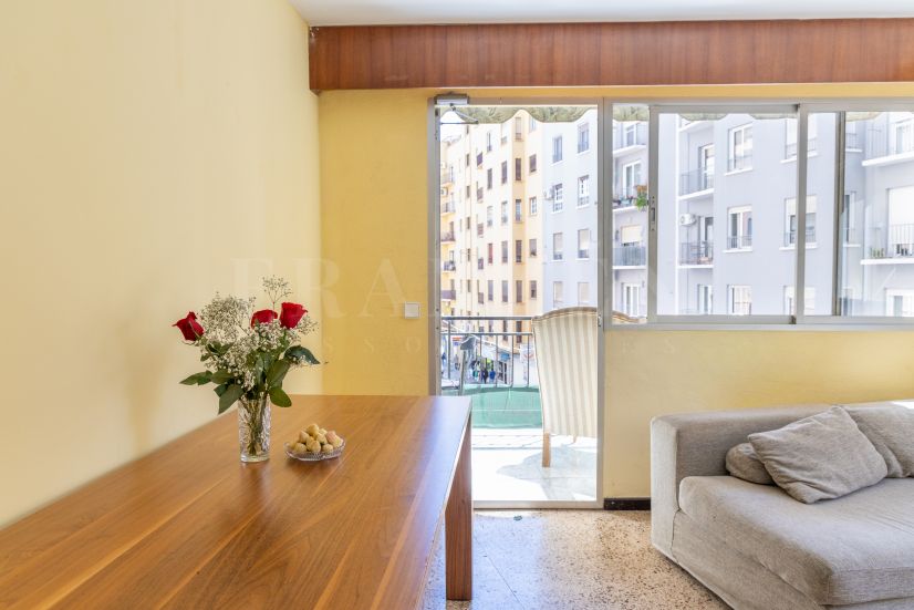 This corner apartment offers excellent potential and is ideally located just a short walk from Málaga’s charming old town. The building is situated on a well-known and lively street that is scheduled for renovation, a development that is expected to further enhance both the surroundings and property value. The first image has been generated using AI to show the possible outcome of a renovation.