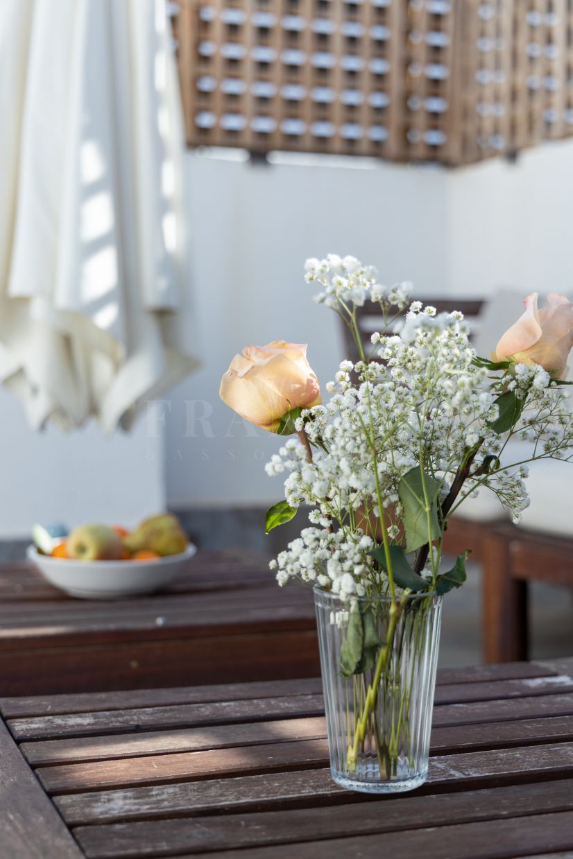 Planta superior: Acogedora zona de dormitorio con acceso, a través de amplias puertas de cristal, a una amplia terraza soleada de 25 m², perfecta para relajarse o recibir invitados. En esta planta también se encuentra un práctico trastero.
