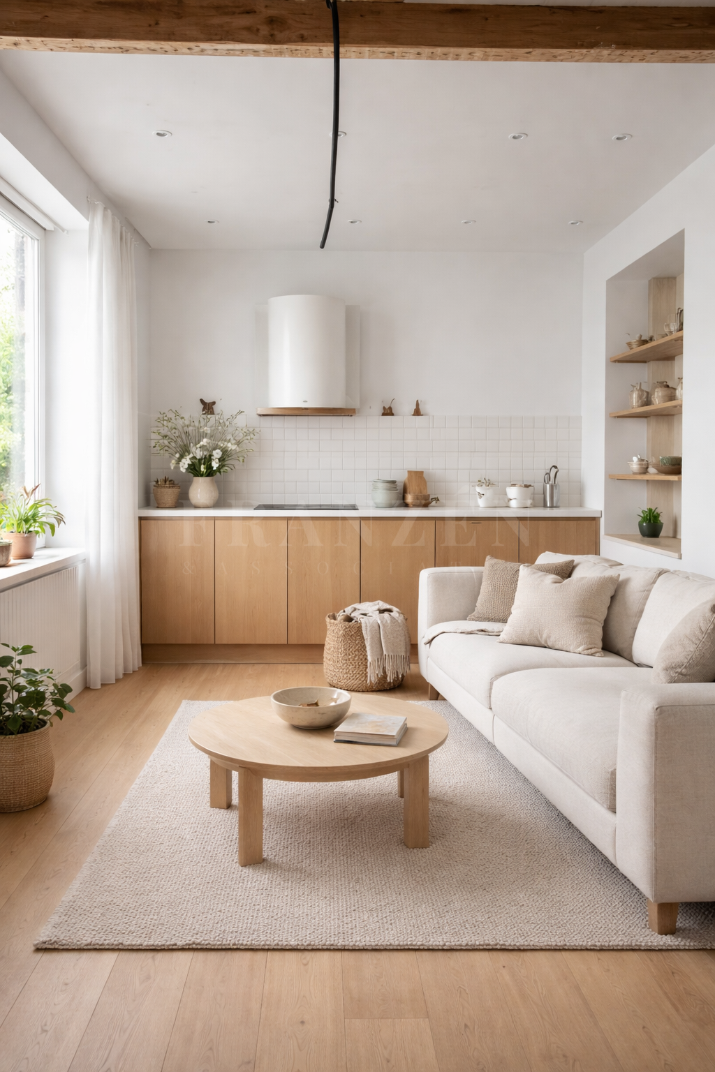 La primera imagen es un render que, en el anuncio, ha sido generado por IA y muestra diferentes estilos para un posible salón, ayudando a visualizar las distintas posibilidades. El resto de las imágenes muestran un edificio idéntico colindante que ha sido renovado y vendido.